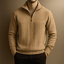 A rich, structured knit gives this quarter-zip pullover a strong, high-end presence. The raised cable pattern adds depth, while the ribbed stand collar and smooth interior keep it steady and comfortable through colder days.