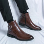 Step into sophistication with our Men's Chelsea Boots, crafted from supple, premium genuine leather. These boots are designed to envelop your feet in luxurious softness while offering a refined aesthetic. The soft leather upper molds comfortably to your feet, ensuring a perfect fit as you walk. With slip-on elastic gores, these boots provide effortless wear, making them a versatile addition to your wardrobe.