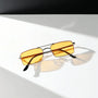 • Orange-tinted decorative lenses – Adds a bold vintage flair while protecting your eyes.