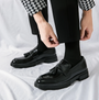 these loafers complemented by a comfortable cushioned interior and a robust sole for all-day wear. Ideal for both formal and casual occasions, they provide both comfort and style with their sleek silhouette and modern tassel accents.
