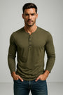 Classic Henley Design: Features a signature button placket, adding a touch of sophistication to your casual attire.